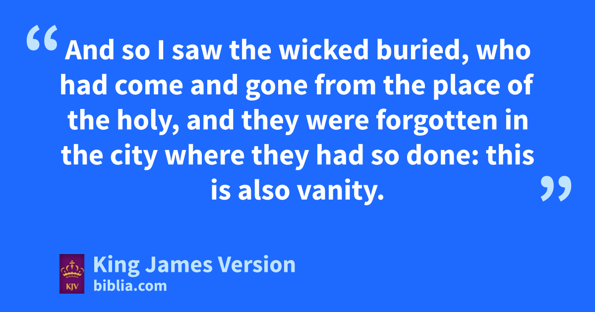 6 Because kto every purpose there is time and jjudgment, therefore the misery of man is great upon him. 7 For lhe knoweth not that which shall be: for mwho can tell him ||when it shall be? 8 There is no man that hath npower over the spirit oto retain the spirit; neither hath he hpower in the day of death: and there is no ||pdischarge in that war; neither shall wickedness deliver qthose that are given to it. 9 All this have I seen, and applied my heart unto every work that is done under the sun: there is a time wherein one man ruleth over another to his own hurt. 10 And rso I saw the wicked buried, who had come and gone from sthe place of the holy, and tthey were forgotten in the city where they had so done: this is also vanity.