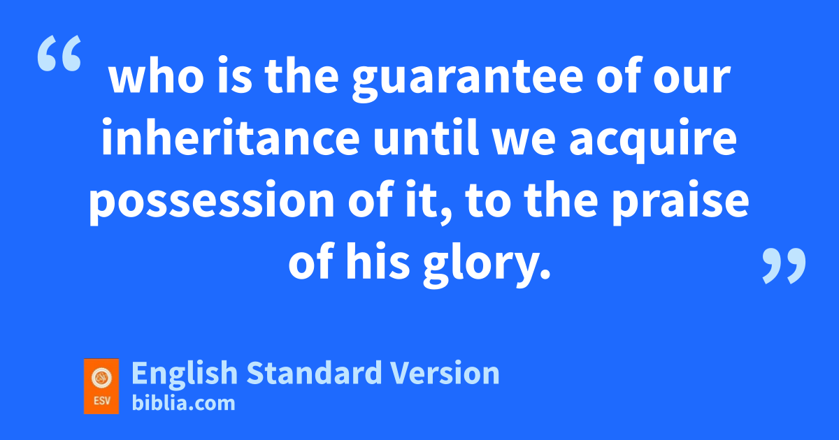 11 In him we have obtained zan inheritance, ahaving been predestined baccording to the purpose of him who works all things according to cthe counsel of his will, 12 so that we who were the first to hope in Christ might be dto the praise of his glory. 13 In him you also, when you heard ethe word of truth, the gospel of your salvation, and believed in him, fwere sealed with the gpromised Holy Spirit, 14 who is hthe guarantee5 of our iinheritance until jwe acquire kpossession of it,6 lto the praise of his glory.