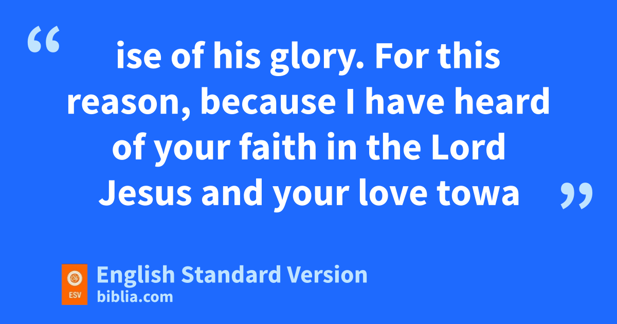 15 For this reason, mbecause I have heard of your faith in the Lord Jesus and your love6 toward all the saints, 16 I ndo not cease to give thanks for you, oremembering you in my prayers, 17 that pthe God of our Lord Jesus Christ, the Father of glory, qmay give you the Spirit of wisdom and of revelation in the knowledge of him, 18 rhaving the eyes of your hearts enlightened, that you may know what is sthe hope to which he has called you, what are tthe riches of his glorious inheritance in the saints, 19 and what is the immeasurable greatness of his power toward us who believe, uaccording to the working of vhis great might 20 that he worked in Christ wwhen he raised him from the dead and xseated him at his right hand yin the heavenly places, 21 zfar above aall rule and authority and power and dominion, and above bevery name that is named, not only in cthis age but also in the one to come. 22 And dhe put all things under his feet and gave him as ehead over all things to the church, 23 fwhich is his body, gthe fullness of him hwho fills iall in all.