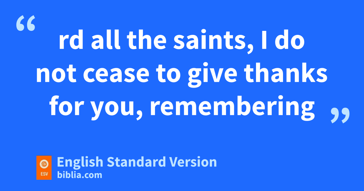 15 For this reason, mbecause I have heard of your faith in the Lord Jesus and your love6 toward all the saints, 16 I ndo not cease to give thanks for you, oremembering you in my prayers, 17 that pthe God of our Lord Jesus Christ, the Father of glory, qmay give you the Spirit of wisdom and of revelation in the knowledge of him, 18 rhaving the eyes of your hearts enlightened, that you may know what is sthe hope to which he has called you, what are tthe riches of his glorious inheritance in the saints, 19 and what is the immeasurable greatness of his power toward us who believe, uaccording to the working of vhis great might 20 that he worked in Christ wwhen he raised him from the dead and xseated him at his right hand yin the heavenly places, 21 zfar above aall rule and authority and power and dominion, and above bevery name that is named, not only in cthis age but also in the one to come. 22 And dhe put all things under his feet and gave him as ehead over all things to the church, 23 fwhich is his body, gthe fullness of him hwho fills iall in all.