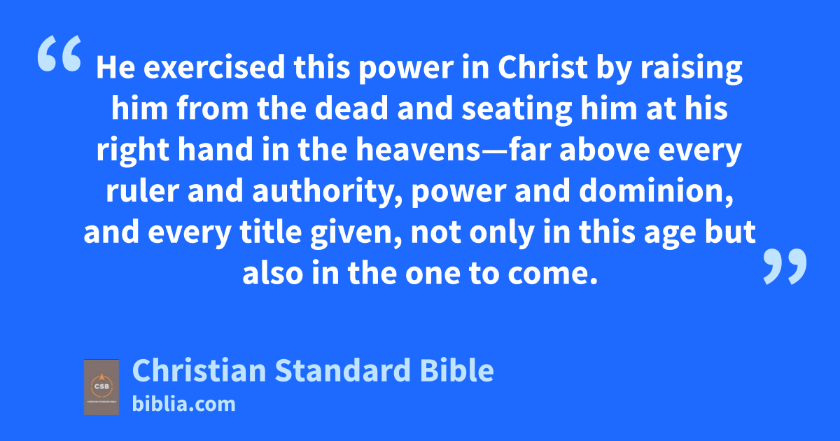 20 He exercised this power in Christ by raising him from the dead and seating him at his right handaa in the heavensab—21 far above every ruler and authority, power and dominion, and every title given,A,ac not only in this age but also in the one to come.ad 22 And he subjected everything under his feetB,ae and appointed himC as headaf over everything for the church, 23 which is his body,ag the fullnessah of the one who fills all thingsai in every way.