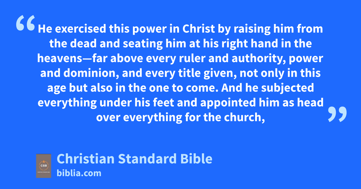 20 He exercised this power in Christ by raising him from the dead and seating him at his right handaa in the heavensab—21 far above every ruler and authority, power and dominion, and every title given,A,ac not only in this age but also in the one to come.ad 22 And he subjected everything under his feetB,ae and appointed himC as headaf over everything for the church, 23 which is his body,ag the fullnessah of the one who fills all thingsai in every way.