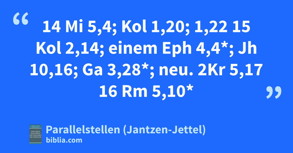 15 Kol 2,14; einem Eph 4,4*; Jh 10,16; Ga 3,28*; neu. 2Kr 5,17
