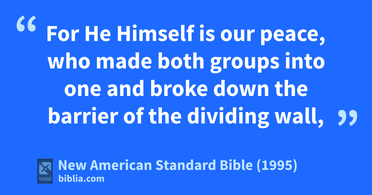 14 For He Himself is aour peace, bwho made both groups into one and broke down the 1barrier of the dividing wall,