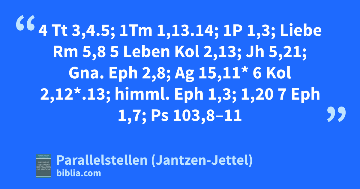 4 Tt 3,4.5; 1Tm 1,13.14; 1P 1,3; Liebe Rm 5,8