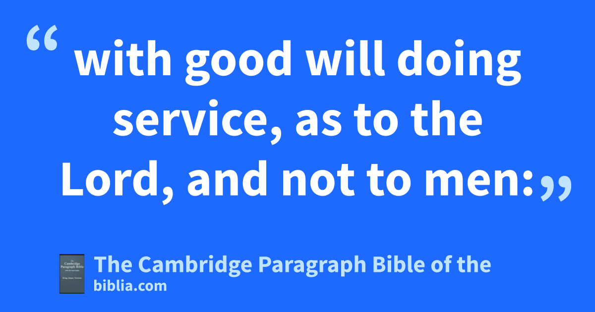5 gServants, be obedient to them that are your masters ggaccording to the flesh, hwith fear and trembling, giin singleness of your heart, iias unto Christ; 6 gnot with eyeservice, as jmenpleasers; but as kthe servants of Christ, doing lthe will of God from the heart; 7 mwith good will doing service, as to the Lord, and not to men: 8 knowing that whatsoever good thing any man doeth, nthe same shall he receive of the Lord, owhether he be bond or free. 9 And, pye masters, do the same things unto them, * qforbearing threatening: knowing that * kryour Master also is in heaven; sneither is there respect of persons with him.