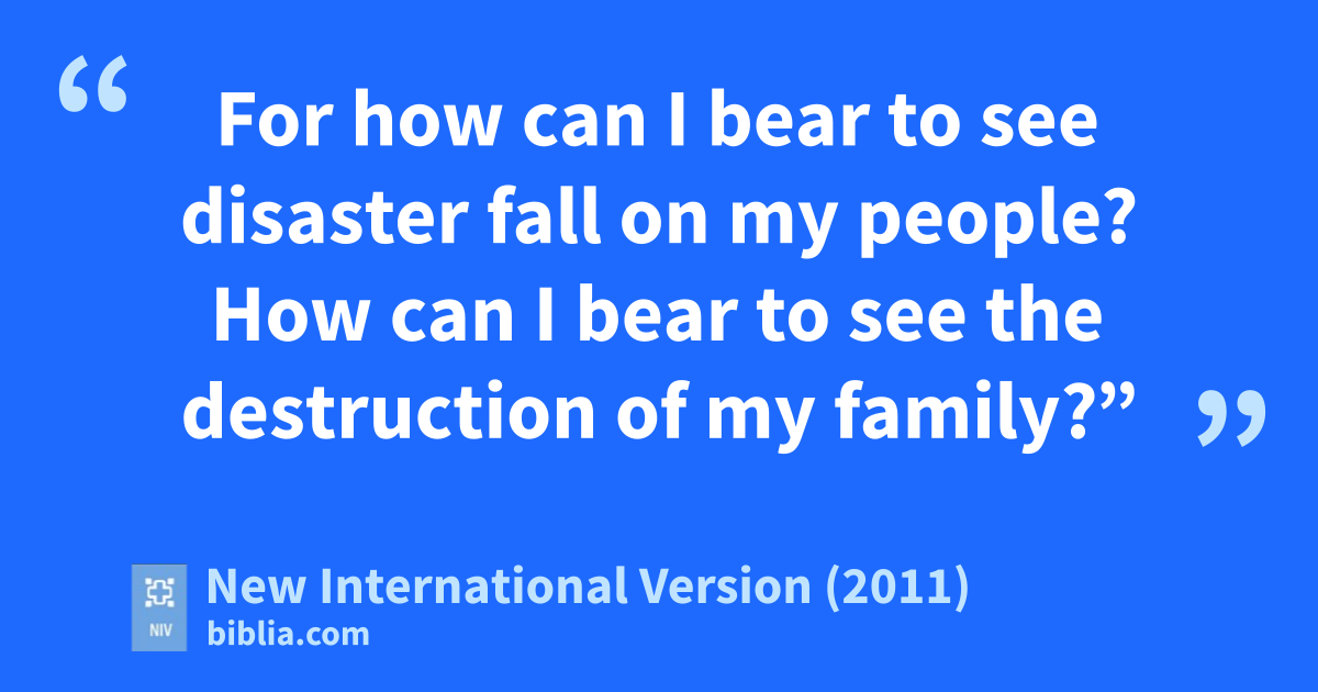 5 “If it pleases the king,” she said, “and if he regards me with favoro and thinks it the right thing to do, and if he is pleased with me, let an order be written overruling the dispatches that Haman son of Hammedatha, the Agagite, devised and wrote to destroy the Jews in all the king’s provinces. 6 For how can I bear to see disaster fall on my people? How can I bear to see the destruction of my family?”p