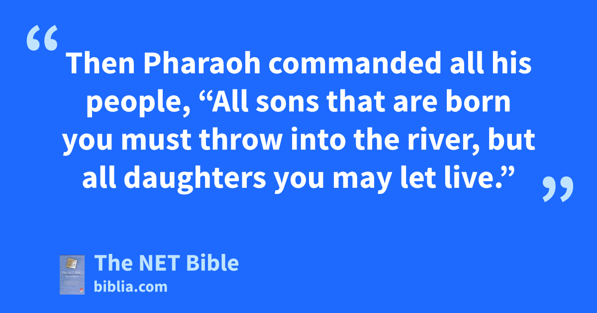 1:22 Then Pharaoh commanded all his people, “All sons58 that are born you must throw59 into the river, but all daughters you may let live.”60