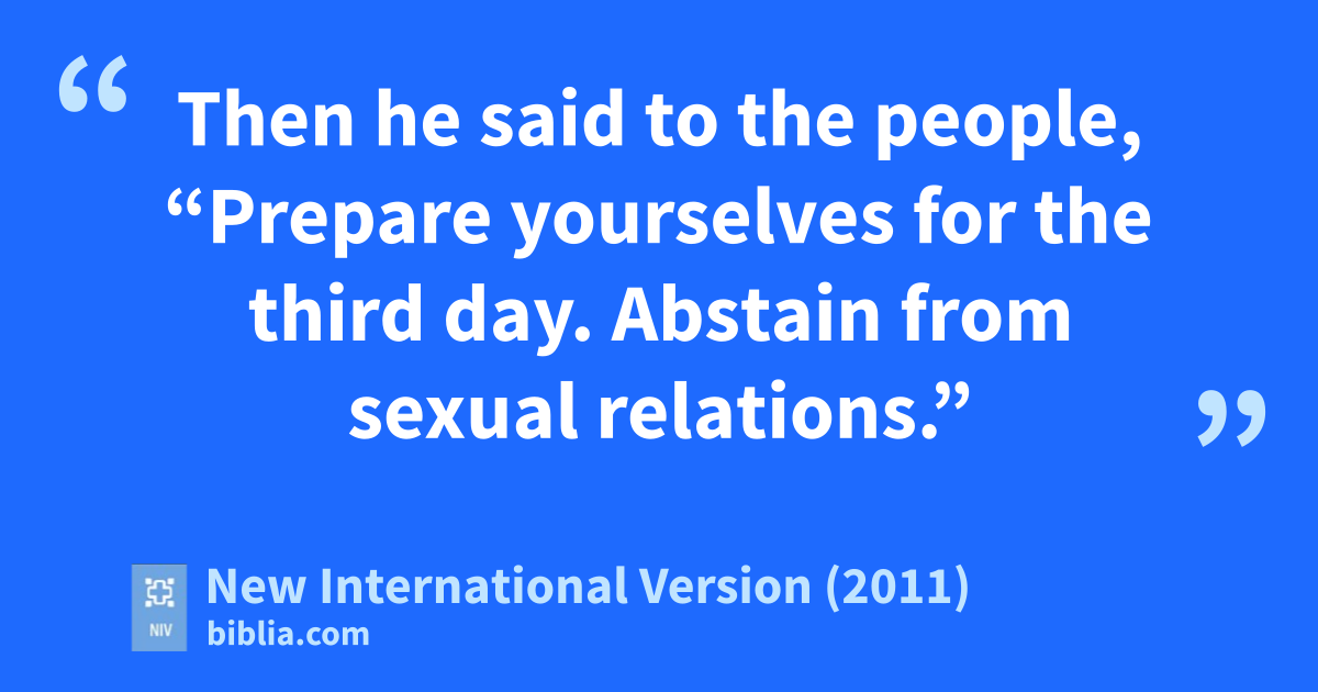14 After Moses had gone down the mountain to the people, he consecrated them, and they washed their clothes.e 15 Then he said to the people, “Prepare yourselves for the third day. Abstainf from sexual relations.”