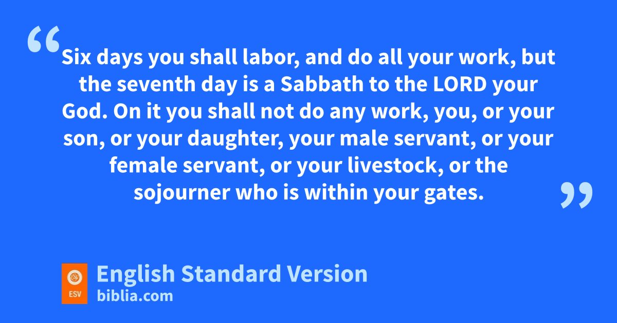 8 i“Remember the Sabbath day, to keep it holy. 9 jSix days you shall labor, and do all your work, 10 but the kseventh day is a Sabbath to the Lord your God. On it you shall not do any work, you, or your son, or your daughter, your male servant, or your female servant, or your livestock, or the lsojourner who is within your gates. 11 For min six days the Lord made the heavens and the earth, the sea, and all that is in them, and rested on the seventh day. Therefore the Lord blessed the Sabbath day and made it holy.
