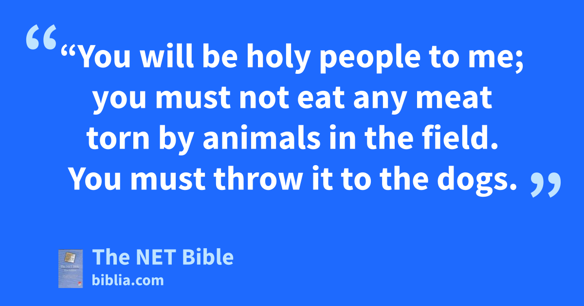 22:31 “You will be holy66 people to me; you must not eat any meat torn by animals in the field.67 You must throw it to the dogs.