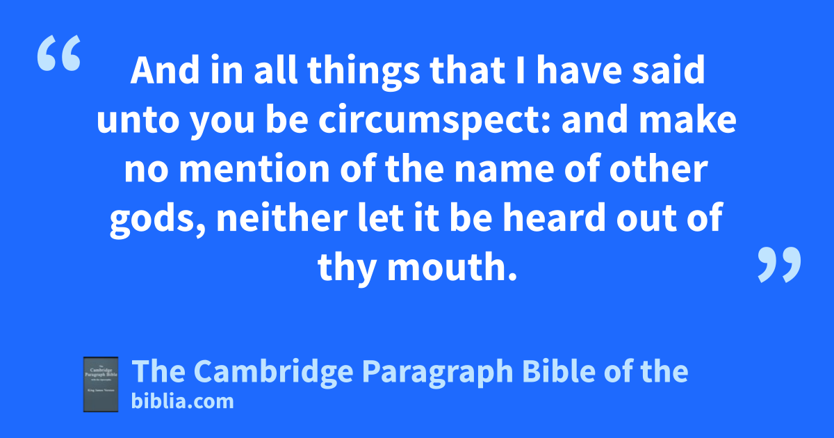 10 And nsix years thou shalt sow thy land, and shalt gather in the fruits thereof: 11 but the seventh year thou shalt let it rest and lie still; that the poor of thy people may eat: and what they leave the beasts of the field shall eat. In like manner thou shalt deal with thy vineyard, and with thy * oliveyard. 12 oSix days thou shalt do thy work, and on the seventh day thou shalt rest: that thine ox and thine ass may rest, and the son of thy handmaid, and the stranger, may be refreshed. 13 And in all things that I have said unto you be pcircumspect: and qmake no mention of the name of other gods, neither let it be heard out of thy mouth.