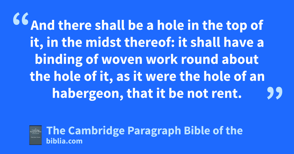 31 And bthou shalt make the robe of the ephod all of blue. 32 And there shall be a hole in the top of it, in the midst thereof: it shall have a binding of woven work round about the hole of it, as it were the hole of an habergeon, cthat it be not rent. 33 And beneath upon the * hem of it thou shalt make pomegranates of blue, and of purple, and of scarlet, round about the hem thereof; and bells of gold between them round about: 34 a golden bell and a pomegranate, a golden bell and a pomegranate, upon the hem of the robe round about. 35 dAnd it shall be upon Aaron to minister: and his sound shall be heard when he goeth in unto the holy place before the Lord, and when he cometh out, that he die not. 36 And thou shalt make ea plate of pure gold, and grave upon it, like fthe engravings of a signet, gHOLINESS TO THE LORD. 37 And thou shalt put it on a blue lace, that it may be upon the hmitre; upon the forefront of the mitre it shall be. 38 And it shall be upon Aaron’s forehead, that Aaron may ibear the iniquity of the holy things, which the children of Israel shall hallow in all their holy gifts; and it shall be always upon his forehead, that they may be kaccepted before the Lord.