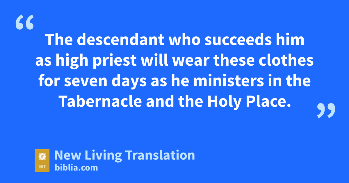 29 “Aaron’s sacred garments must be preserved for his descendants who succeed him, and they will wear them when they are anointed and ordained. 30 The descendant who succeeds him as high priest will wear these clothes for seven days as he ministers in the Tabernacle and the Holy Place.