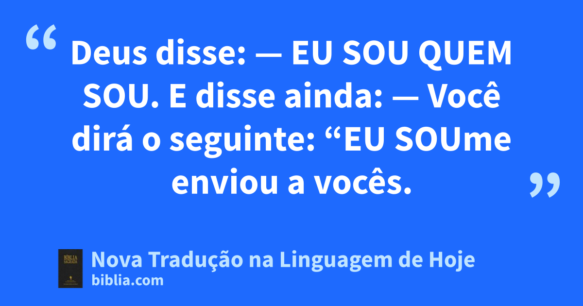 — Quando eu for falar com os israelitas e lhes disser: “O Deus dos seus antepassados me enviou a vocês”, eles vão me perguntar: “Qual é o nome dele?” Aí o que é que eu digo?13