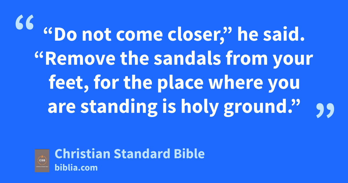 5 “Do not come closer,” he said. “Remove the sandals from your feet, for the place where you are standing is holy ground.”m 6 Then he continued, “I am the God of your father,* the God of Abraham, the God of Isaac, and the God of Jacob.”n Moses hid his face because he was afraid to look at God.