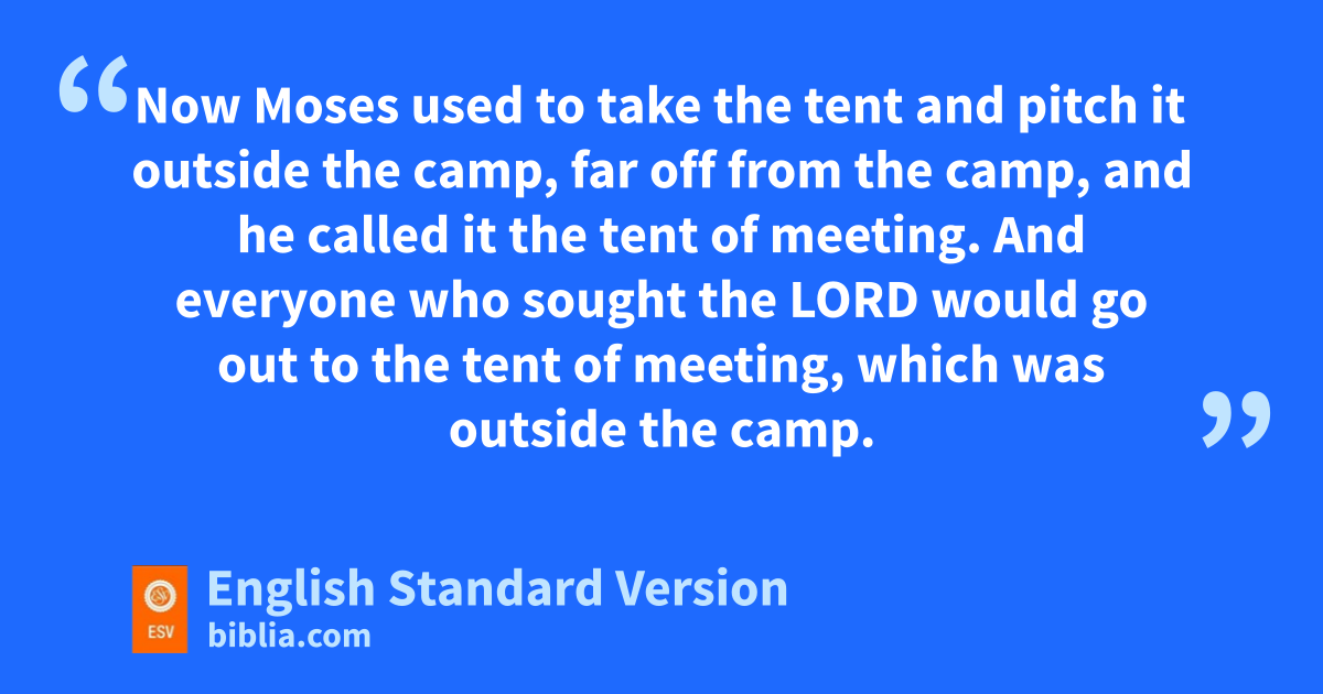 7 Now Moses used to take the tent and pitch it outside the camp, far off from the camp, and zhe called it the tent of meeting. And everyone who asought the Lord would go out to the tent of meeting, which was outside the camp. 8 Whenever Moses went out to the tent, all the people would rise up, and beach would stand at his tent door, and watch Moses until he had gone into the tent. 9 When Moses entered the tent, the cpillar of cloud would descend and stand at the entrance of the tent, and the Lord1 would speak with Moses. 10 And when all the people saw the pillar of cloud standing at the entrance of the tent, all the people would rise up and worship, each at his tent door. 11 Thus dthe Lord used to speak to Moses face to face, as a man speaks to his friend. When Moses turned again into the camp, his eassistant Joshua the son of Nun, a young man, would not depart from the tent.