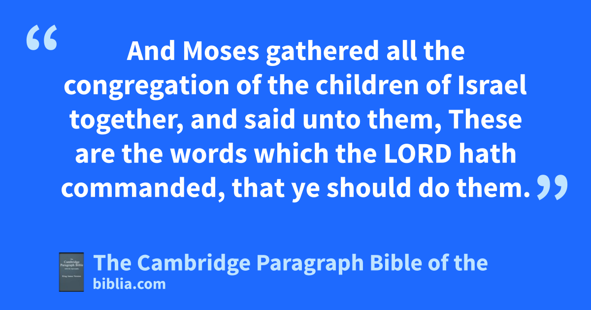 XXXV. And Moses gathered all the congregation of the children of Israel together, and said unto them, aThese are the words which the Lord hath commanded, that ye should do them. 2 bSix days shall work be done, but on the seventh day there shall be to you * a holy day, a sabbath of rest to the Lord: whosoever doeth work therein shall be put to death. 3 cYe shall kindle no fire throughout your habitations upon the sabbath day. 4 And Moses spake unto all the congregation of the children of Israel, saying, dThis is the thing which the Lord commanded, saying, 5 Take ye from amongst you an offering unto the Lord: whosoever is of a willing heart, let him bring it, an offering of the Lord; gold, and silver, and brass, 6 and blue, and purple, and scarlet, and fine linen, and goats’ hair, 7 and rams’ skins dyed red, and badgers’ skins, and shittim wood, 8 and oil for the light, and spices for anointing oil, and for the sweet incense, 9 and onyx stones, and stones to be set for the ephod, and for the breastplate. 10 And eevery wise hearted among you shall come, and make all that the Lord hath commanded; 11 fthe tabernacle, his tent, and his covering, his taches, and his boards, his bars, his pillars, and his sockets, 12 gthe ark, and the staves thereof, with the mercy seat, and hthe vail of the covering, 13 ithe table, and his staves, and all his vessels, and kthe shewbread, 14 lthe candlestick also for the light, and his furniture, and his lamps, with mthe oil for the light, 15 nand the incense altar and his staves, oand the anointing oil, and pthe sweet incense, and qthe hanging for the door at the entering in of the tabernacle, 16 rthe altar of burnt offering with his brasen grate, his staves, and all his vessels, sthe laver and his foot, 17 tthe hangings of the court, his pillars, and their sockets, and the hanging for the door of the court, 18 the upins of the tabernacle, and the pins of the court, and xtheir cords, 19 ythe clothes of service, to do service in the holy place, the holy garments for Aaron the priest, and the garments of his sons, to minister in the priest’s office.