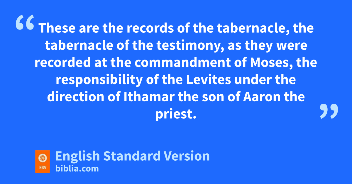 21 These are the records of the tabernacle, dthe tabernacle of the testimony, as they were recorded at the commandment of Moses, the responsibility of the Levites eunder the direction of Ithamar the son of Aaron the priest. 22 fBezalel the son of Uri, son of Hur, of the tribe of Judah, made all that the Lord commanded Moses; 23 and with him was fOholiab the son of Ahisamach, of the tribe of Dan, an engraver and designer and embroiderer in blue and purple and scarlet yarns and fine twined linen.