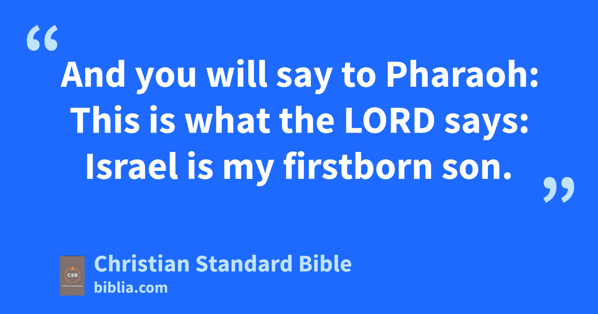 21 The Lord instructed Moses, “When you go back to Egypt, make sure you do before Pharaoh all the wonders that I have put within your power. But I will harden his heartB,s so that he won’t let the people go. 22 And you will say to Pharaoh: This is what the Lord says: Israel is my firstborn son.t 23 I told you: Let my son go so that he may worship me, but you refused to let him go. Look, I am about to kill your firstborn son!”u