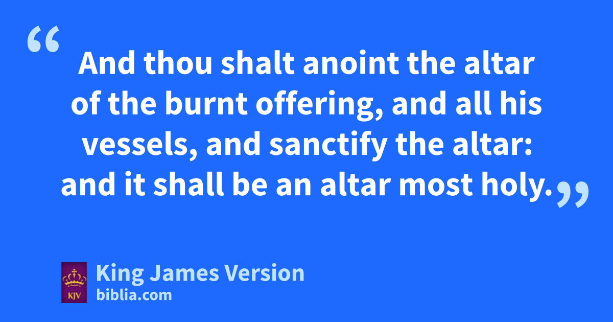 40 And the Lord spake unto Moses, saying, 2 On the first day of the afirst month shalt thou bset up the tabernacle of the tent of the congregation. 3 And thou shalt put therein the ark of the testimony, and ccover the ark with the vail. 4 And dthou shalt bring in the table, and set in order †the things that are to be set in order upon it; eand thou shalt bring in the candlestick, and light the lamps thereof. 5 fAnd thou shalt set the altar of gold for the incense before the ark of the testimony, and put the hanging of the door to the tabernacle. 6 gAnd thou shalt set the altar of the burnt offering before the door of the tabernacle of the tent of the congregation. 7 And hthou shalt set the laver between the tent of the congregation and the altar, and shalt put water therein. 8 And thou shalt set up the court round about, and hang up the hanging at the court gate. 9 And thou shalt take the anointing oil, and ianoint the tabernacle, and all that is therein, and shalt hallow it, and all the vessels thereof: and it shall be holy. 10 And thou shalt anoint kthe altar of the burnt offering, and all his vessels, and sanctify the altar: and it shall be an altar †most holy. 11 And thou shalt anoint kthe laver and his foot, and sanctify it. 12 lAnd thou shalt bring Aaron and his sons unto the door of the tabernacle of the congregation, and wash them with water. 13 And thou shalt put upon Aaron the holy garments, mand anoint him, and sanctify him; that he may minister unto me in the priest’s office. 14 And thou shalt bring his sons, and clothe them with coats: 15 And thou shalt anoint them, as thou didst anoint their father, that they may minister unto me in the priest’s office: for their anointing shall surely be nan everlasting priesthood throughout their generations. 16 Thus did Moses: according to all that the Lord commanded him, so did he.