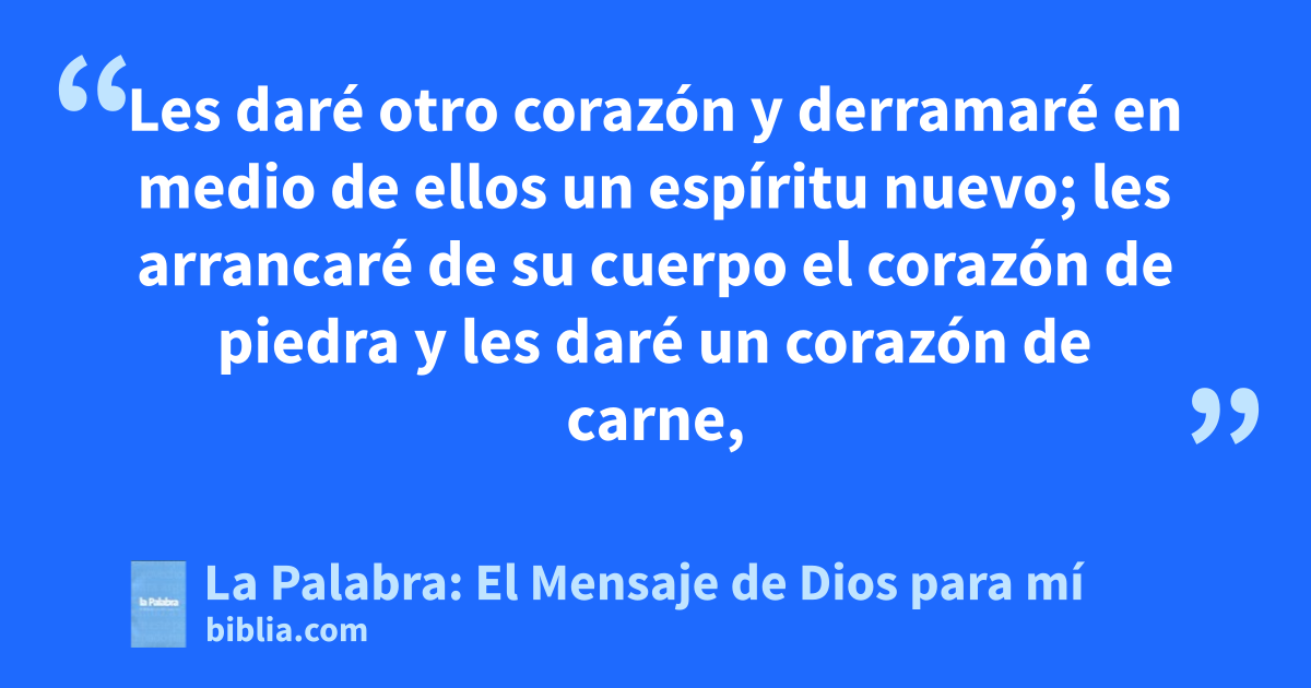 15 — Hijo de hombre, los habitantes de Jerusalén dicen de sus parientes, de sus familiares y de toda la comunidad de Israel: “Esos están lejos del Señor. A nosotros se nos ha dado el país en herencia”. 16 Así pues, diles: Esto dice el Señor Dios: Cuando los llevé a naciones lejanas y los dispersé por otros países, yo fui su santuario, por poco tiempo, en los países adonde llegaron. 17 Por eso, así dice el Señor Dios: Los recogeré de entre los pueblos y los reuniré de entre los países por donde los dispersé; y les daré la tierra de Israel. 18 Cuando vuelvan, retirarán de ella todos sus ídolos y abominaciones. 19 Les daré otro corazón y derramaré en medio de ellos un espíritu nuevo; les arrancaré de su cuerpo el corazón de piedra y les daré un corazón de carne, 20 para que vivan según mis preceptos y respeten mis normas y las cumplan. De esta manera ellos serán mi pueblo y yo seré su Dios. 21 Pero a la gente cuyo corazón esté apegado a sus ídolos y abominaciones, los haré responsables de su conducta —oráculo del Señor Dios—.