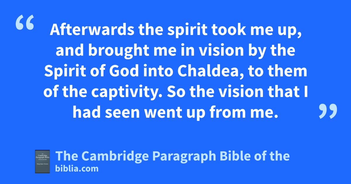 22 Then ndid the cherubims lift up their wings, and nthe wheels besides them; and nothe glory of the God of Israel was over them above. 23 And othe glory of the Lord went up from the midst of the city, and stood upon pthe mountain which is on the east side of the city. 24 Afterwards qthe spirit took me up, and brought me rin vision by the Spirit of God sinto Chaldea, to them of the captivity. So the vision that I had seen went up from me. 25 Then I spake unto them of the captivity all the things that the Lord had shewed me.