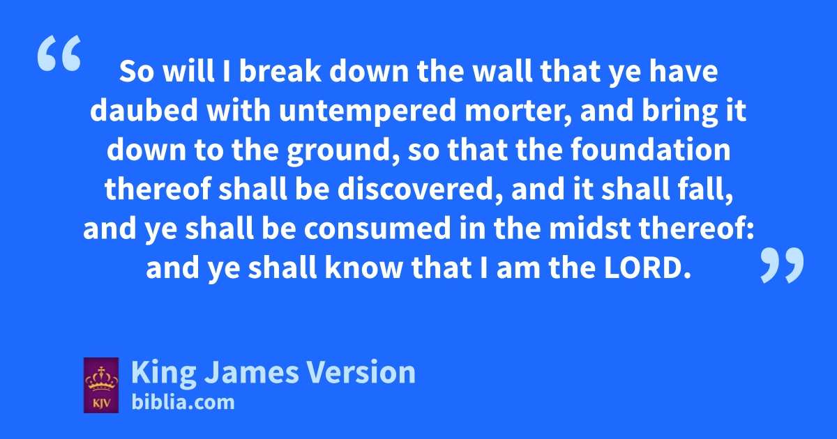 13 And the word of the Lord came unto me, saying, 2 Son of man, prophesy against the prophets of Israel that prophesy, and say thou unto a†them that prophesy out of their own hearts, Hear ye the word of the Lord; 3 Thus saith the Lord God; Woe unto the foolish prophets, that †follow their own spirit, ||band have seen nothing! 4 O Israel, thy prophets are clike the foxes in the deserts. 5 Ye have not gone up dinto the ||gaps, neither †dmade up the hedge for the house of Israel dto stand in the battle in the day of the Lord. 6 eThey have seen vanity eand lying divination, saying, The Lord saith: and fthe Lord hath not sent them: and they have gmade others to hope that they would confirm the word. 7 Have ye not seen ea vain vision, and have ye not spoken ea lying divination, hwhereas ye say, The Lord saith it; albeit I have not spoken? 8 Therefore thus saith the Lord God; Because ye have spoken vanity, and seen lies, therefore, ibehold, I am against you, saith the Lord God. 9 And mine hand shall be upon ethe prophets that see vanity, eand that divine lies: they shall not be in the ||assembly of my people, neither kshall they be written in the writing of the house of Israel, lneither shall they enter into the land of Israel; lmand ye shall know that I am the Lord God. 10 nBecause, even because they have seduced my people, osaying, Peace; and there was no peace; and one built up ||a wall, and, lo, others pdaubed it with untempered morter: 11 Say unto them pwhich daub it with untempered morter, that it shall fall: there shall be qran overflowing shower; and ye, O qgreat hailstones, shall fall; and sta stormy wind shall rend it. 12 Lo, when the wall is fallen, shall it not be said unto you, Where is the daubing wherewith ye have daubed it? 13 Therefore thus saith the Lord God; I will even rend it with ta stormy wind in my fury; and there shall be qan overflowing shower in mine anger, and qgreat hailstones in my fury to consume it. 14 So will I break down the wall that pye have daubed with untempered morter, and bring it down to the ground, so that the foundation thereof shall be discovered, and it shall fall, and ye shall be consumed in the midst thereof: mand ye shall know that I am the Lord. 15 Thus will I accomplish my wrath upon the wall, and upon them pthat have daubed it with untempered morter, and will say unto you, The wall is no more, neither they that daubed it; 16 To wit, the prophets of Israel which prophesy concerning Jerusalem, and owhich see visions of peace for her, and there is no peace, saith the Lord God.