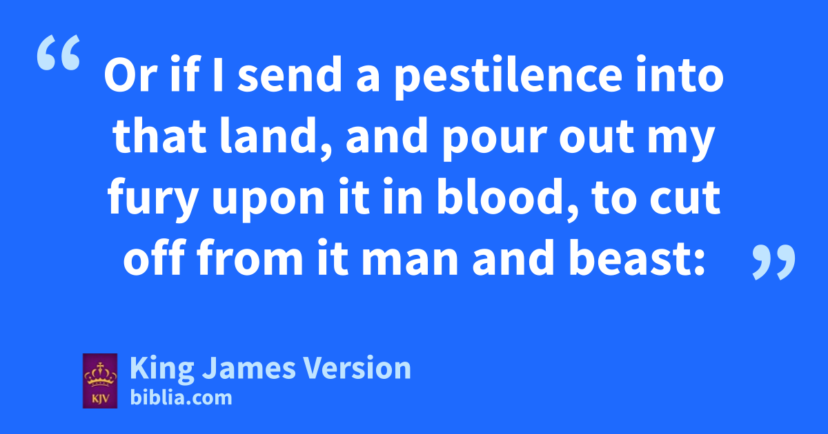 12 The word of the Lord came again to me, saying, 13 Son of man, when the land sinneth against me qby trespassing grievously, then will I stretch out mine hand upon it, and rwill break the staff of the bread thereof, and rrwill send famine upon it, and will cut off man and beast from it: 14 sThough these three men, tNoah, uDaniel, and vJob, were in it, wthey should deliver but their own souls xby their righteousness, saith the Lord God. 15 If I cause ynoisome beasts to pass through the land, and they ||spoil it, so that it be desolate, that no man may pass through because of the beasts: 16 sThough these three men were †in it, zas I live, saith the Lord God, they shall deliver neither sons nor daughters; they only shall be delivered, but zzthe land shall be desolate. 17 Or if aI bring ya sword upon that land, and say, aaSword, go through the land; so that bI cut off man and beast from it: 18 cThough these three men were in it, zas I live, saith the Lord God, they shall deliver neither sons nor daughters, but they only shall be delivered themselves. 19 Or if I send da pestilence into that land, and epour out my fury upon it in blood, bto cut off from it man and beast: 20 cThough Noah, Daniel, and Job, were in it, zas I live, saith the Lord God, they shall deliver neither son nor daughter; wthey shall but deliver their own souls by their righteousness. 21 For thus saith the Lord God; ||How much more when xI send my four sore judgments upon Jerusalem, fghithe sword, and fhkthe famine, and fglthe noisome beast, and fghmthe pestilence, bto cut off from it man and beast? 22 Yet, behold, ntherein shall be left a remnant that shall be brought forth, both sons and daughters: behold, they shall come forth unto you, and ye shall see otheir way and their doings: and pye shall be comforted concerning the evil that I have brought upon Jerusalem, even concerning all that I have brought upon it. 23 And pthey shall comfort you, when ye see otheir ways and their doings: and ye shall know that I have not done qwithout cause all that I have done in it, saith the Lord God.