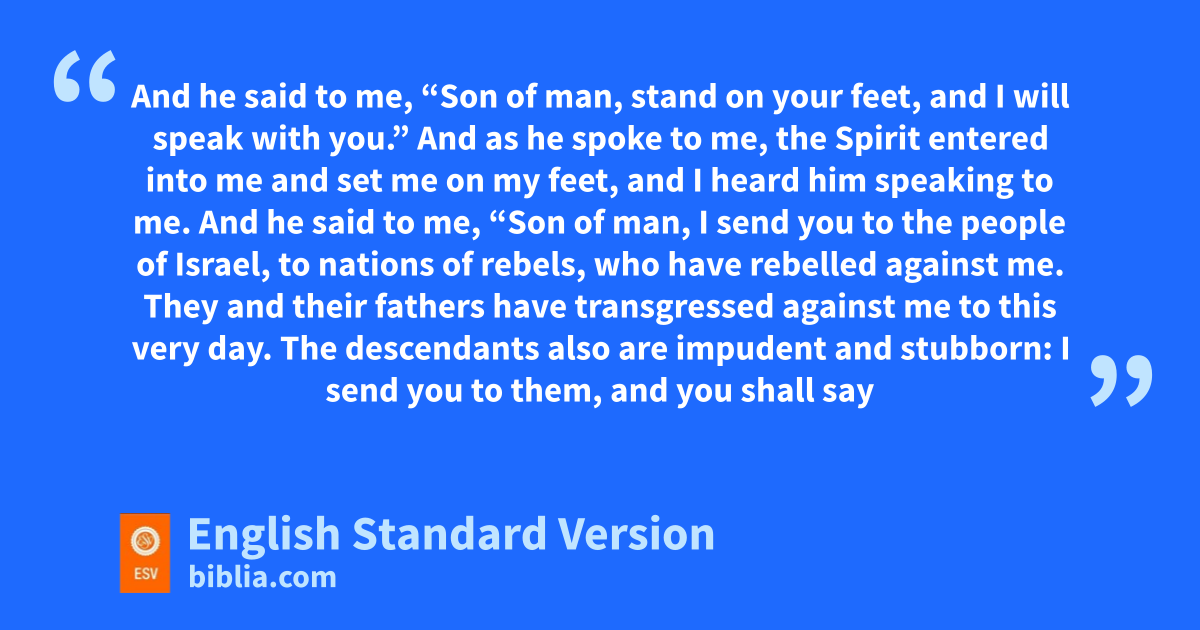 2 And he said to me, c“Son of man,1 dstand on your feet, and I will speak with you.” 2 And as he spoke to me, ethe Spirit entered into me and fset me on my feet, and I heard him speaking to me. 3 And he said to me, “Son of man, I send you to the people of Israel, to gnations of rebels, who have rebelled against me. hThey and their fathers have transgressed against me to this very day. 4 The descendants also are iimpudent and stubborn: I send you to them, and you shall say to them, ‘Thus says the Lord God.’ 5 And jwhether they hear or refuse to hear (for they are ga rebellious house) kthey will know that a prophet has been among them. 6 And you, son of man, lbe not afraid of them, nor be afraid of their words, mthough briers and thorns are with you and you sit on nscorpions.2 Be not afraid of their words, nor be dismayed at their looks, for they are a rebellious house. 7 And you shall speak my words to them, jwhether they hear or refuse to hear, for they are a rebellious house.