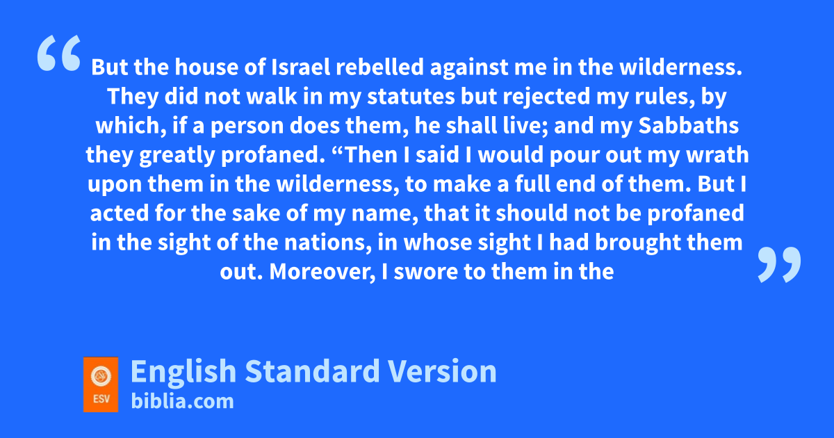 “Then I said I would pour out my wrath upon them jand spend my anger against them in the midst of the land of Egypt. 9 kBut I acted lfor the sake of my name, mthat it should not be profaned in the sight of the nations among whom they lived, nin whose sight I made myself known to them in bringing them out of the land of Egypt. 10 oSo I led them out of the land of Egypt and brought them into the wilderness. 11 pI gave them my statutes and made known to them my rules, qby which, if a person does them, he shall live. 12 Moreover, I gave them rmy Sabbaths, as a sign between me and them, sthat they might know that I am the Lord who sanctifies them. 13 tBut the house of Israel rebelled against me in the wilderness. uThey did not walk in my statutes but rejected my rules, by which, if a person does them, he shall live; vand my Sabbaths they greatly profaned.