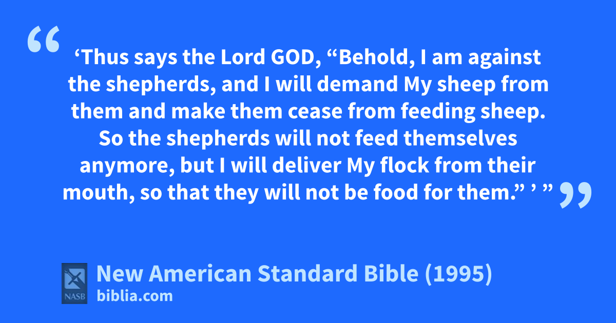 10 ‘Thus says the Lord God, “Behold, I am aagainst the shepherds, and I will demand My 1sheep 2from them and make them bcease from feeding 1sheep. So the shepherds will not 3feed themselves anymore, but I will cdeliver My flock from their mouth, so that they will not be food for them.” ’ ”