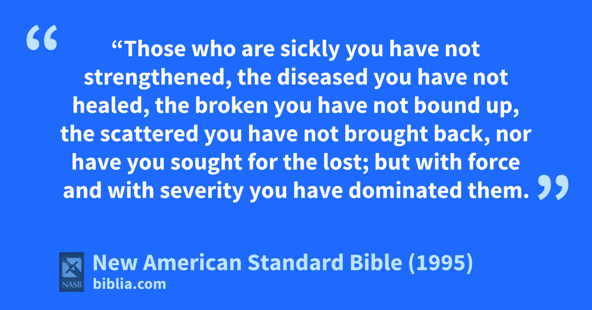 4 “Those who are sickly you have not strengthened, the 1diseased you have not healed, athe broken you have not bound up, the scattered you have not brought back, nor have you bsought for the lost; but with force and with severity you have dominated them.