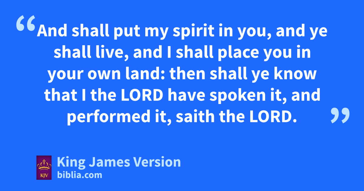 37 aThe hand of the Lord was upon me, and carried me out bin the spirit of the Lord, and set me down in the midst of cthe valley dwhich was full of bones, 2 And caused me to pass by them round about: and, behold, there were very many in the open ||cvalley; and, lo, they were very dry. 3 And he said unto me, Son of man, ecan these bones live? And I answered, O Lord God, fthou knowest. 4 Again he said unto me, Prophesy upon these bones, and say unto them, O ye dry bones, hear the word of the Lord. 5 Thus saith the Lord God unto these bones; Behold, gI will cause hbreath to enter into you, and ye shall live: 6 And I will lay isinews upon you, and will bring up flesh upon you, and icover you with skin, and put hbreath in you, and ye shall live; kand ye shall know that I am the Lord. 7 So I prophesied las I was commanded: and as I prophesied, there was a noise, and behold a shaking, and the bones came together, bone to his bone. 8 And when I beheld, lo, imthe sinews and the flesh came up upon them, and ithe skin covered them above: but there was no hbreath in them. 9 Then said he unto me, Prophesy unto the ||wind, prophesy, son of man, and say to the wind, Thus saith the Lord God; Come from nthe four winds, O breath, and gbreathe upon these slain, that they may live. 10 So I prophesied las he commanded me, and hothe breath came into them, and they lived, and ostood up upon their feet, an exceeding great army. 11 Then he said unto me, Son of man, these bones are the whole house of Israel: behold, they say, pOur bones are dried, and qour hope is lost: rwe are cut off for our parts. 12 Therefore prophesy and say unto them, Thus saith the Lord God; Behold, O my people, dsI will open your graves, and cause you to come up out of your graves, and tbring you into the land of Israel. 13 kAnd ye shall know that I am the Lord, when I have opened your graves, O my people, and brought you up out of your graves, 14 And oushall put my hspirit in you, and ye shall live, and I shall place you in your own land: then shall ye know that I the Lord vhave spoken it, and performed it, saith the Lord.