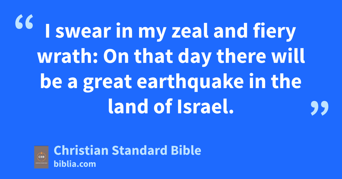 17 “ ‘This is what the Lord God says: Are you the one I spoke about in former times through my servants, the prophets of Israel, who for years prophesied in those times that I would bring you against them? 18 Now on that day, the day when Gog comes against the land of Israel—this is the declaration of the Lord God—my wrath will flare up.C 19 I swear in my zeal and fiery wrath:p On that day there will be a great earthquake in the land of Israel. 20 The fish of the sea, the birds of the sky, the animals of the field, every creature that crawls on the ground, and every human being on the face of the earth will tremble before me. The mountains will be demolished, the cliffs will collapse, and every wall will fall to the ground. 21 I will call for a sword against him on all my mountains—this is the declaration of the Lord God—and every man’s sword will be against his brother.q 22 I will execute judgment on him with plague and bloodshed. I will pour out torrential rain, hailstones, fire, and burning sulfur on him, as well as his troops and the many peoples who are with him.r 23 I will display my greatness and holiness, and will reveal myself in the sight of many nations.s Then they will know that I am the Lord.’