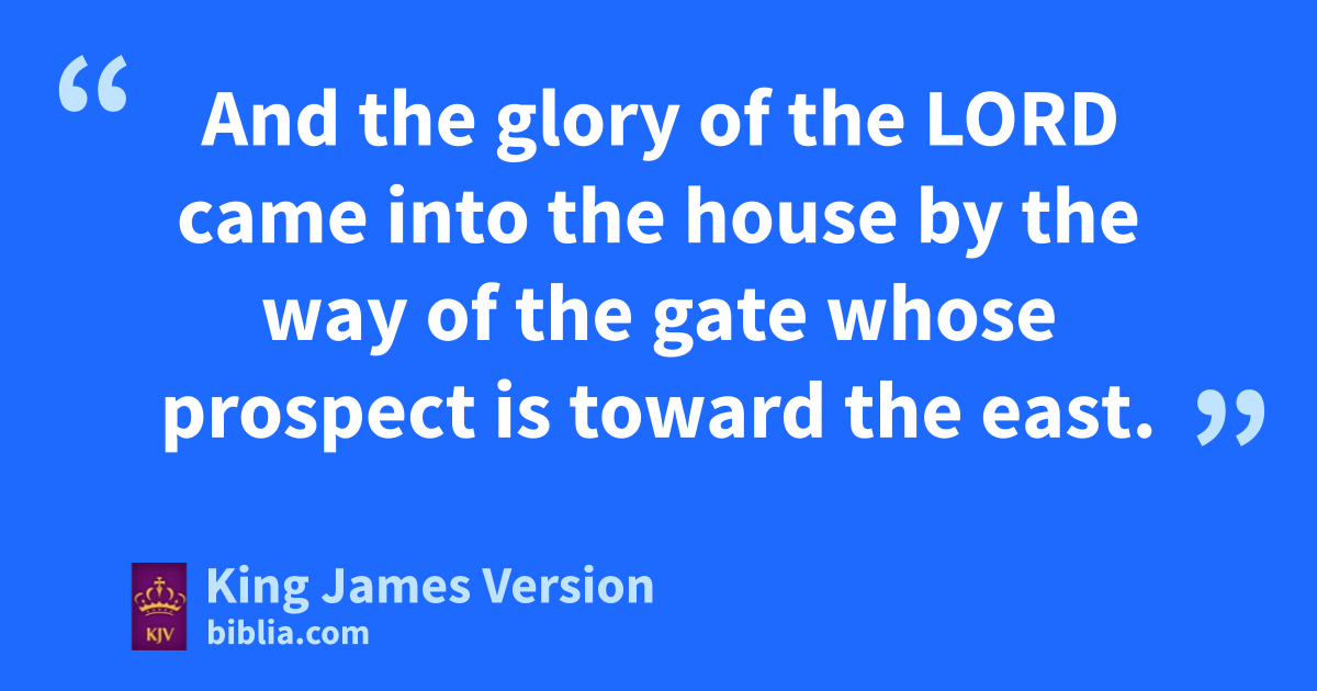 43 Afterward he brought me to the gate, even athe gate that looketh toward the east: 2 And, behold, bthe glory of the God of Israel came from the way of the east: and chis voice was like a noise of many waters: and dthe earth shined with his glory. 3 And it was eaccording to the appearance of the vision which I saw, even according to the vision that I saw ||when I came fto destroy the city: and the visions were like the vision that I saw gby the river Chebar; and eI fell upon my face. 4 And bhthe glory of the Lord came into the house by the way of athe gate whose prospect is toward the east. 5 So ithe spirit took me up, and brought me into kthe inner court; and, behold, lthe glory of the Lord filled the house. 6 And I heard him speaking unto me out of the house; and mthe man stood by me. 7 And he said unto me, Son of man, nthe place of my throne, and othe place of the soles of my feet, pwhere I will dwell qin the midst of the children of Israel for ever, and rmy holy name, shall the house of Israel rsno more defile, neither they, nor their kings, tby their whoredom, nor tby the carcases of their kings in their high places. 8 uIn their setting of their threshold by vmy thresholds, and their post by wmy posts, ||and xthe wall between me and them, rythey have even defiled my holy name by their abominations that they have committed: wherefore I have consumed them in mine anger. 9 Now let them put away ttheir whoredom, and tthe carcases of their kings, far from me, and pI will dwell in the midst of them for ever.