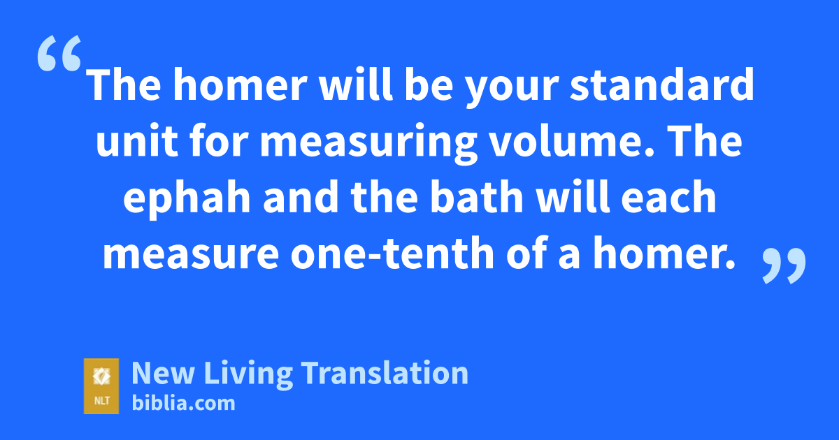 9 “For this is what the Sovereign Lord says: Enough, you princes of Israel! Stop your violence and oppression and do what is just and right. Quit robbing and cheating my people out of their land. Stop expelling them from their homes, says the Sovereign Lord. 10 Use only honest weights and scales and honest measures, both dry and liquid.* 11 The homer* will be your standard unit for measuring volume. The ephah and the bath* will each measure one-tenth of a homer. 12 The standard unit for weight will be the silver shekel.* One shekel will consist of twenty gerahs, and sixty shekels will be equal to one mina.*