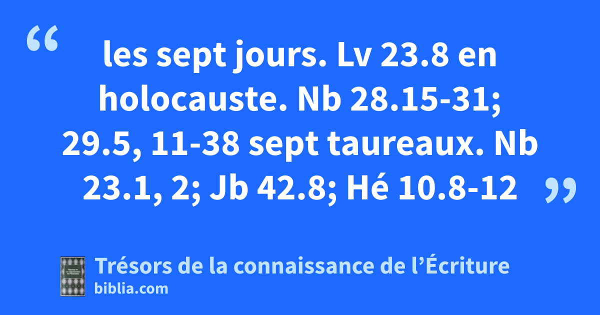 les sept jours. Lv 23.8 en holocauste. Nb 28.15-31; 29.5, 11-38 sept taureaux. Nb 23.1, 2; Jb 42.8; Hé 10.8-12
