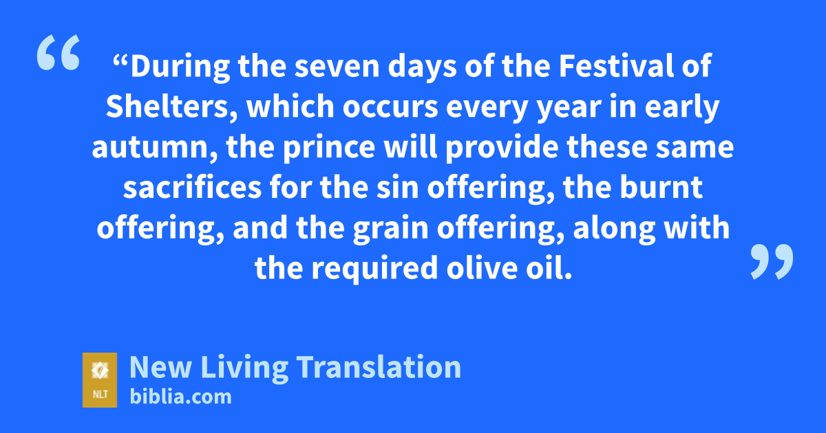25 “During the seven days of the Festival of Shelters, which occurs every year in early autumn,* the prince will provide these same sacrifices for the sin offering, the burnt offering, and the grain offering, along with the required olive oil.