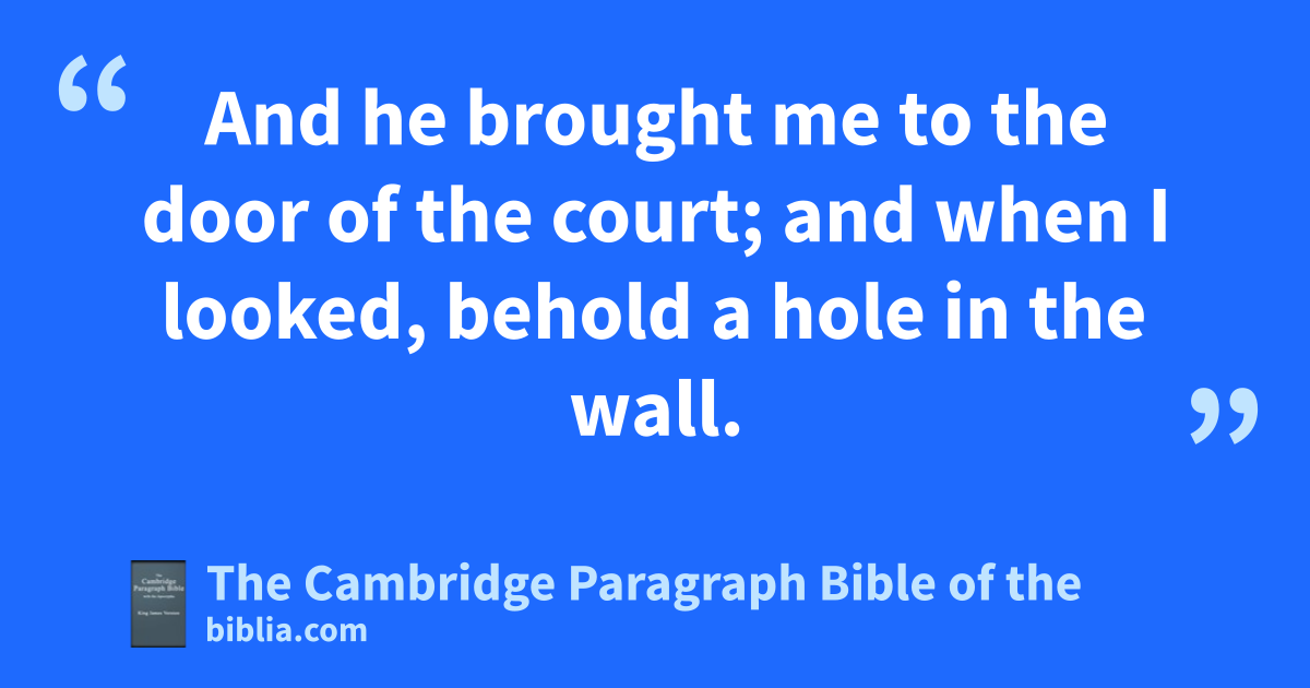 5 Then said he unto me, Son of man, lift up thine eyes now the way towards the north. So I lift up mine eyes the way toward the north, tand behold, northward at the gate of uthe altar this pimage of jealousy in the entry. 6 He said furthermore unto me, Son of man, seest thou what they do? even tuuthe great abominations that the house of Israel committeth here, that I should go far off from my sanctuary? but turn thee yet again, and thou shalt see greater abominations. 7 And he brought me to the door of the court; and when I looked, behold va hole in the wall. 8 Then said he unto me, Son of man, vvdig now in the wall: and when I had digged in the wall, behold a door. 9 And he said unto me, Go in, and tbehold the wicked abominations that they do here. 10 So I went in and saw; and behold every form of wcreeping things, and tabominable beasts, and all the idols of the house of Israel, xpourtrayed upon the wall round about. 11 And there stood before them yseventy men of zthe ancients of the house of Israel, and ain the midst of them stood Jaazaniah the son of bShaphan, with every man his censer in his hand; and a thick cloud of incense went up. 12 Then said he unto me, Son of man, hast thou seen what zthe ancients of the house of Israel do in the dark, every man in the chambers of chis imagery? for they say, deThe Lord seeth us not; dthe Lord hath forsaken the earth. 13 He said also unto me, Turn thee yet again, and thou shalt see greater abominations that they do.