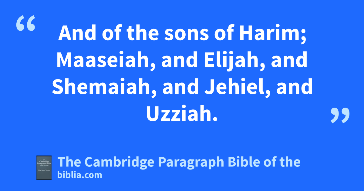 25 Moreover of Israel: of the sons of gParosh; Ramiah, and Jeziah, and hMalchiah, and Miamin, and Eleazar, and hMalchijah, and Benaiah. 26 And of the sons of iElam; Mattaniah, Zechariah, and Jehiel, and Abdi, and Jeremoth, and Eliah. 27 And of the sons of jZattu; Elioenai, Eliashib, Mattaniah, and Jeremoth, and Zabad, and Aziza. 28 Of the sons also of kBebai; Jehohanan, Hananiah, lZabbai, and Athlai. 29 And of the sons of mBani; Meshullam, nMalluch, and Adaiah, Jashub, and Sheal, and Ramoth. 30 And of the sons of oPahath-moab; Adna, and Chelal, Benaiah, pMaaseiah, Mattaniah, Bezaleel, and Binnui, and Manasseh. 31 And of the sons of aHarim; Eliezer, Ishijah, qMalchiah, Shemaiah, Shimeon, 32 rBenjamin, nMalluch, and Shemariah. 33 Of the sons of sHashum; Mattenai, Mattathah, Zabad, Eliphelet, Jeremai, Manasseh, and Shimei. 34 Of the sons of tBani; Maadai, Amram, and Uel, 35 Benaiah, Bedeiah, Chelluh, 36 Vaniah, Meremoth, Eliashib, 37 Mattaniah, Mattenai, and Jaasau, 38 and Bani, and Binnui, Shimei, 39 and Shelemiah, and Nathan, and uAdaiah, 40 * Machnadebai, Shashai, Sharai, 41 Azareel, and Shelemiah, Shemariah, 42 Shallum, Amariah, and Joseph. 43 Of the sons of vNebo; Jeiel, wMattithiah, Zabad, Zebina, Jadau, and Joel, Benaiah. 44 All these had taken strange wives: and some of them had wives xby whom they had children.
