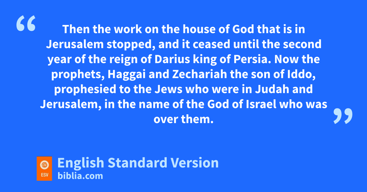 23 Then, when the copy of King Artaxerxes’ letter was read before Rehum and Shimshai the scribe and their associates, they went in haste to the Jews at Jerusalem and by force and power made them cease. 24 Then the work on the house of God that is in Jerusalem stopped, and it ceased until the second year of the reign of Darius king of Persia.