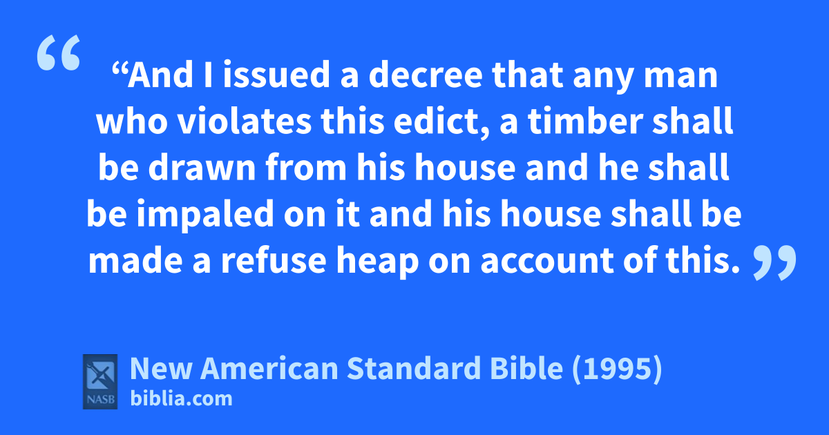 11 “And I issued a decree that aany man who violates this edict, a timber shall be drawn from his house and he shall be impaled on it and bhis house shall be made a refuse heap on account of this.