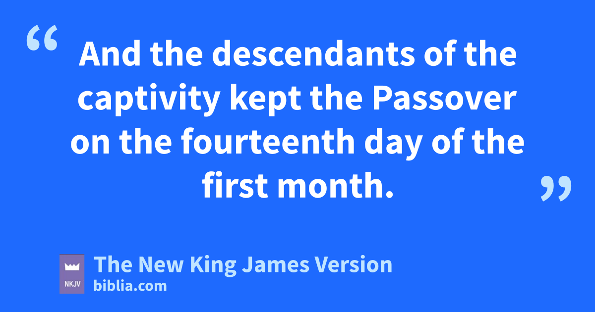 19 7And the descendants of the captivity kept the Passover ton the fourteenth day of the first month. 20 For the priests and the Levites had upurified themselves; all of them were ritually clean. And they vslaughtered the Passover lambs for all the descendants of the captivity, for their brethren the priests, and for themselves. 21 Then the children of Israel who had returned from the captivity ate together with all who had separated themselves from the wfilth 8of the nations of the land in order to seek the Lord God of Israel. 22 And they kept the xFeast of Unleavened Bread seven days with joy; for the Lord made them joyful, and yturned the heart zof the king of Assyria toward them, to strengthen their hands in the work of the house of God, the God of Israel.