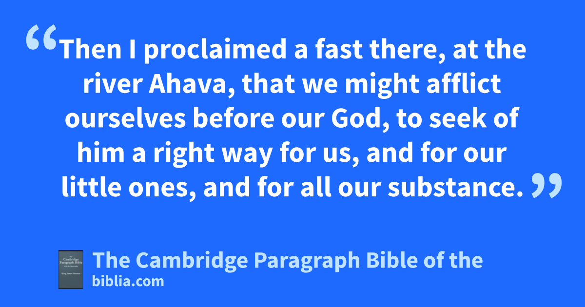15 And I gathered them together to the river that runneth to nAhava; and there * abode we in tents three days: and I viewed the people, and the priests, and found there none of the osons of Levi. 16 Then sent I for Eliezer, for Ariel, for Shemaiah, and for Elnathan, and for Jarib, and for Elnathan, and for Nathan, and for pZechariah, and for qMeshullam, chief men; also for Joiarib, and for Elnathan, men of understanding. 17 And I sent them with commandment unto Iddo the chief at the place Casiphia, and * I told them what they should say unto Iddo, and to his brethren the Nethinims, at the place Casiphia, that they should bring unto us ministers for the house of our God. 18 And rby the good hand of our God upon us they brought us a man of understanding, of the sons of sMahli, the son of Levi, the son of Israel; and tSherebiah, with his sons and his brethren, eighteen; 19 and uHashabiah, and with him Jeshaiah of the sons of vMerari, his brethren and their sons, twenty; 20 also of the wNethinims, whom David and the princes had appointed for the service of the Levites, two hundred and twenty Nethinims: all of them xwere expressed by name. 21 Then I yproclaimed a fast there, at the river nAhava, that we might zafflict ourselves before our God, to seek of him a aright way for us, and for our little ones, and for all our substance. 22 For I was ashamed to require of the king a band of soldiers and horsemen to help us against the enemy in the way: because we had spoken unto the king, saying, bThe hand of our God is upon all them cfor good that seek him; but his power and his wrath is against all them that dforsake him. 23 So we fasted and besought our God for this: and he was eintreated of us.
