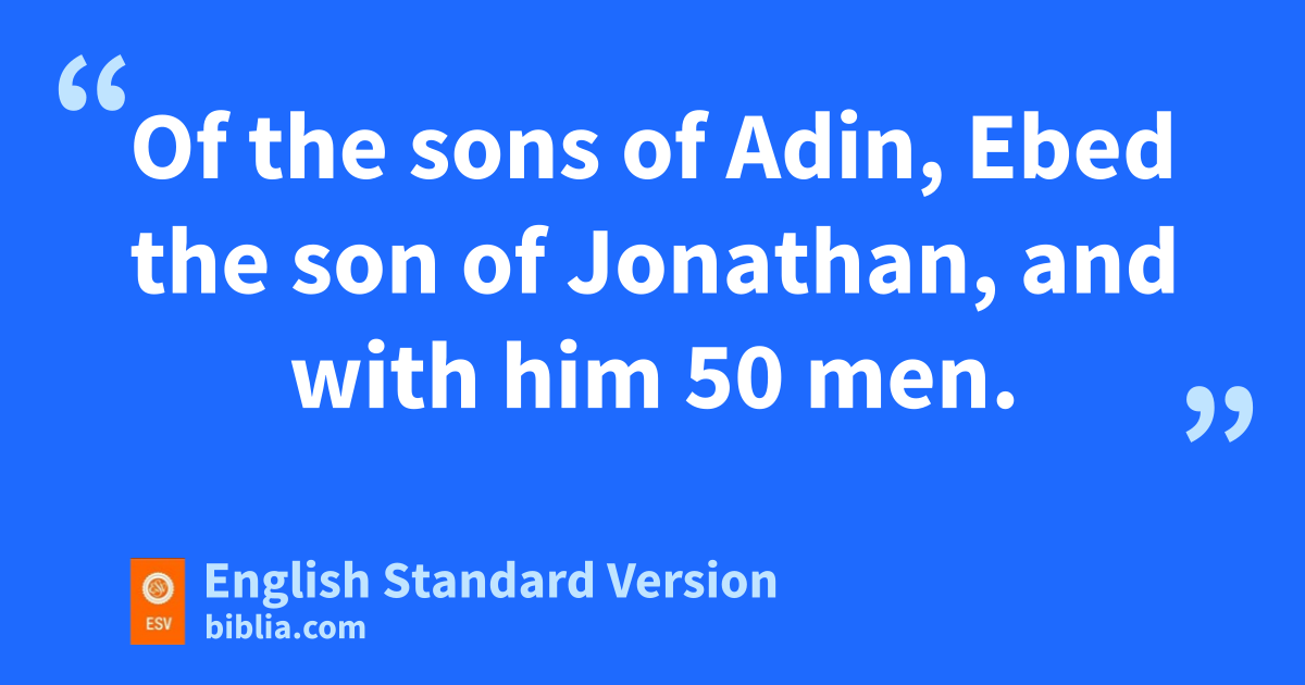 8 These are the heads of their fathers’ houses, and this is the genealogy of those who went up with me from Babylonia, in the reign of Artaxerxes the king: 2 Of the sons of Phinehas, Gershom. Of the sons of uIthamar, Daniel. Of the sons of David, vHattush. 3 Of the sons of Shecaniah, who was of the sons of wParosh, Zechariah, with whom were registered 150 men. 4 xOf the sons of Pahath-moab, Eliehoenai the son of Zerahiah, and with him 200 men. 5 Of the sons of Zattu,1 Shecaniah the son of Jahaziel, and with him 300 men. 6 Of the sons of Adin, Ebed the son of Jonathan, and with him 50 men. 7 Of the sons of Elam, Jeshaiah the son of Athaliah, and with him 70 men. 8 Of the sons of Shephatiah, Zebadiah the son of Michael, and with him 80 men. 9 Of the sons of Joab, Obadiah the son of Jehiel, and with him 218 men. 10 Of the sons of Bani,2 Shelomith the son of Josiphiah, and with him 160 men. 11 yOf the sons of Bebai, Zechariah, the son of Bebai, and with him 28 men. 12 Of the sons of Azgad, Johanan the son of Hakkatan, and with him 110 men. 13 Of the sons of Adonikam, those who came later, their names being Eliphelet, Jeuel, and Shemaiah, and with them 60 men. 14 Of the sons of Bigvai, Uthai and Zaccur, and with them 70 men.