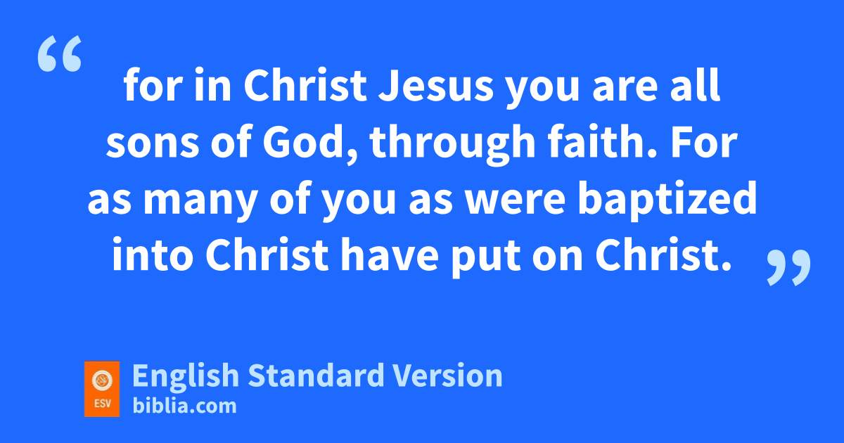 23 Now before faith came, we were held captive under the law, qimprisoned until the coming faith would be revealed. 24 So then, rthe law was our sguardian until Christ came, tin order that we might be justified by faith. 25 But now that faith has come, we are no longer under a guardian, 26 for in Christ Jesus uyou are all sons of God, through faith. 27 For as many of you as vwere baptized winto Christ have xput on Christ. 28 yThere is neither Jew nor Greek, there is neither slave7 nor free, zthere is no male and female, for you are all one in Christ Jesus. 29 And aif you are Christ’s, then you are Abraham’s offspring, bheirs according to promise.