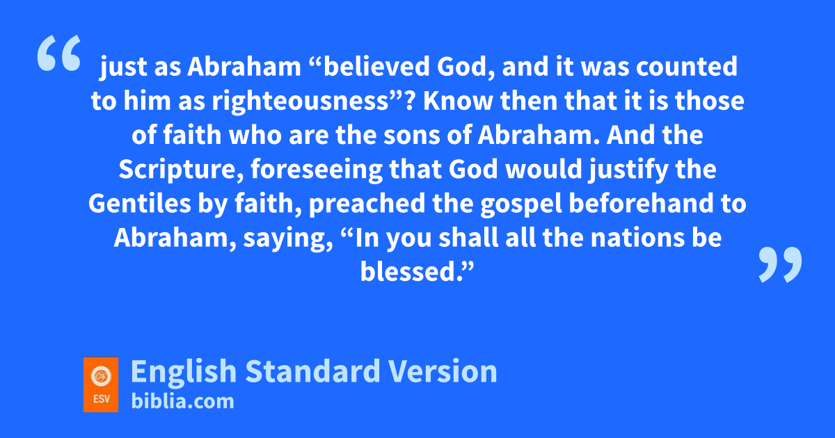 7 Know then that it is ithose of faith who are jthe sons of Abraham. 8 And the Scripture, foreseeing that kGod would justify3 the Gentiles by faith, preached the gospel beforehand to Abraham, saying, l“In you shall all the nations be blessed.” 9 So then, those who are of faith are blessed along with Abraham, the man of faith.