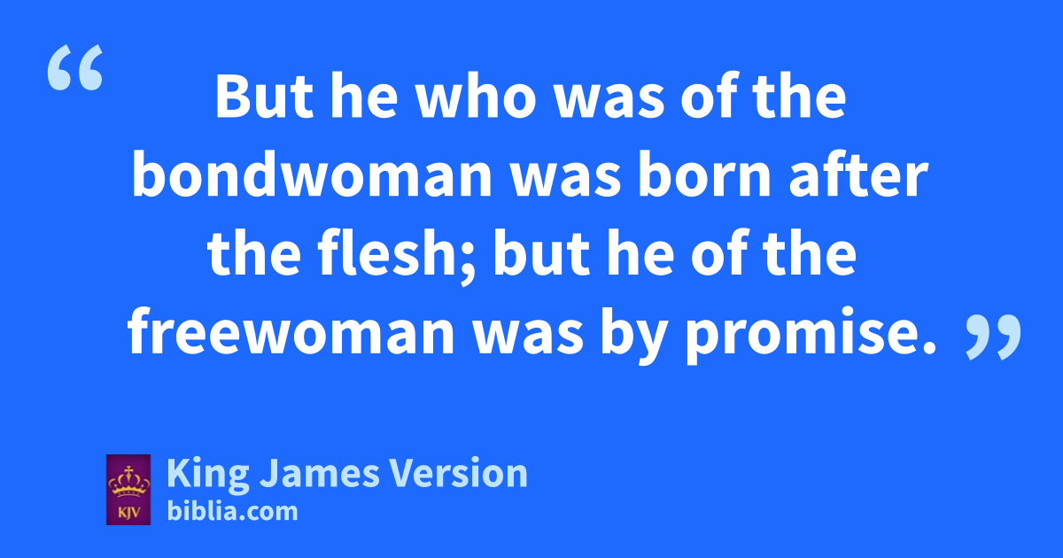 21 Tell me, ye that desire to be under the law, do ye not hear the law? 22 For it is written, that Abraham had two sons, sthe one by a bondmaid, tthe other by a freewoman. 23 But uhe who was of the bondwoman was born after the flesh; twbut he of the freewoman was by promise. 24 Which things are an allegory: for these are the two ||covenants; xthe one from the mount †Sinai, which gendereth yto bondage, which is Agar. 25 For this Agar is mount Sinai in zArabia, and ||answereth to Jerusalem which now is, and yis in bondage with her children. 26 But aJerusalem which is above is free, which is the mother of us all. 27 For it is written, bRejoice, thou barren that bearest not; break forth and cry, thou that travailest not: for the desolate hath many more children than she which hath an husband. 28 Now we, cbrethren, as Isaac was, are cthe children of promise. 29 But as then dhe that was born after the flesh persecuted him that was born after the Spirit, eeven so it is now. 30 Nevertheless what saith fthe scripture? gCast out the bondwoman and her son: for the son of the bondwoman shall not be heir with the son of the freewoman. 31 So then, brethren, we are not children of the bondwoman, hbut of the free.