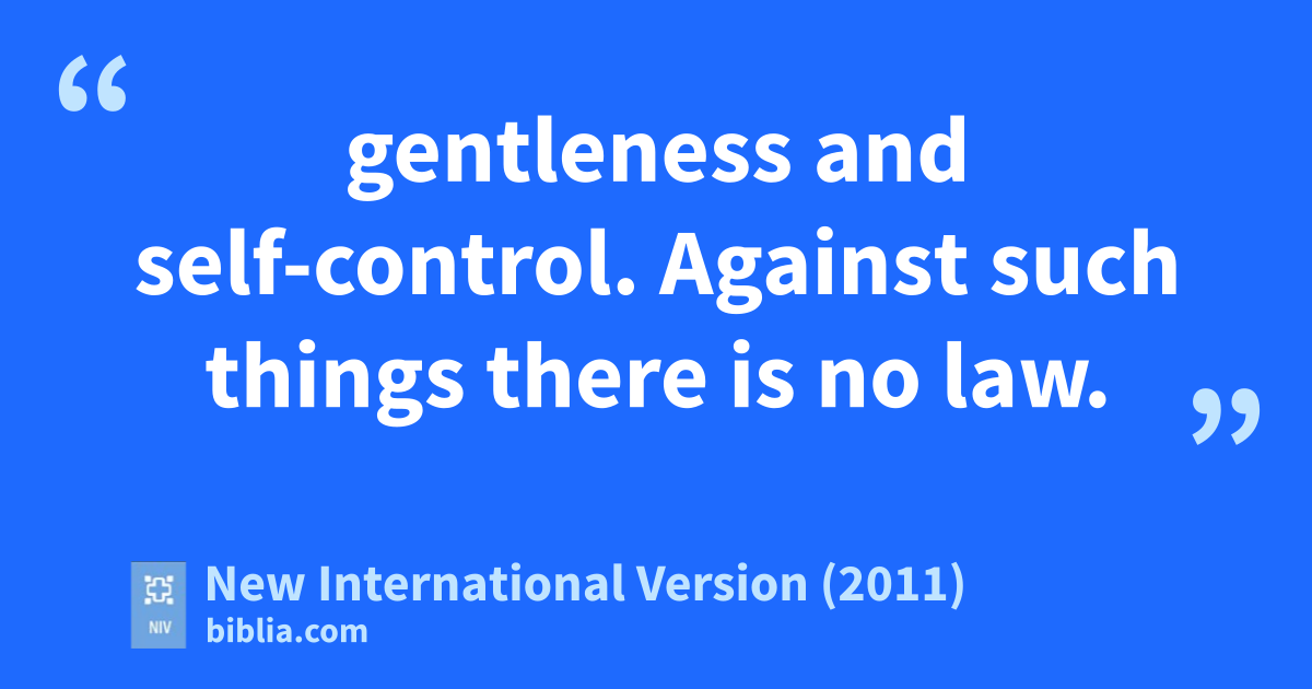 22 But the fruitu of the Spirit is love,v joy, peace,w forbearance, kindness, goodness, faithfulness, 23 gentleness and self-control.x Against such things there is no law.y 24 Those who belong to Christ Jesus have crucified the fleshz with its passions and desires.a 25 Since we live by the Spirit,b let us keep in step with the Spirit. 26 Let us not become conceited,c provoking and envying each other.